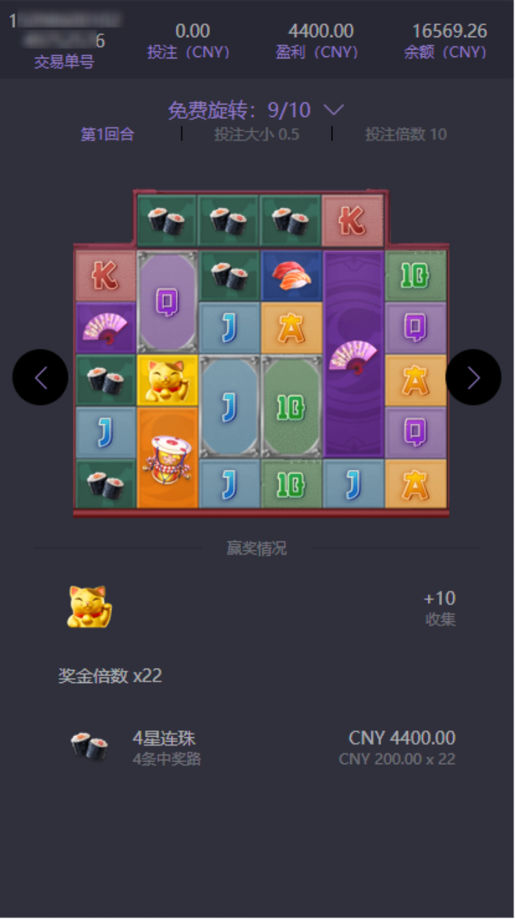 第2、第3、第4位置出现,同时出现4个即可进入免费游戏 |